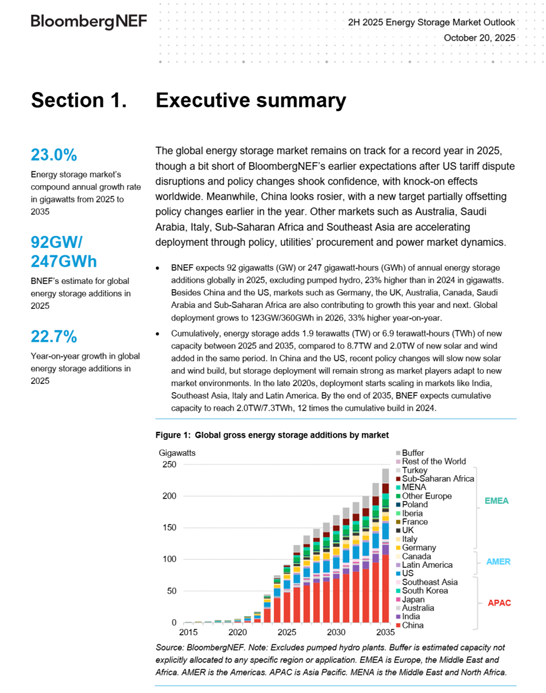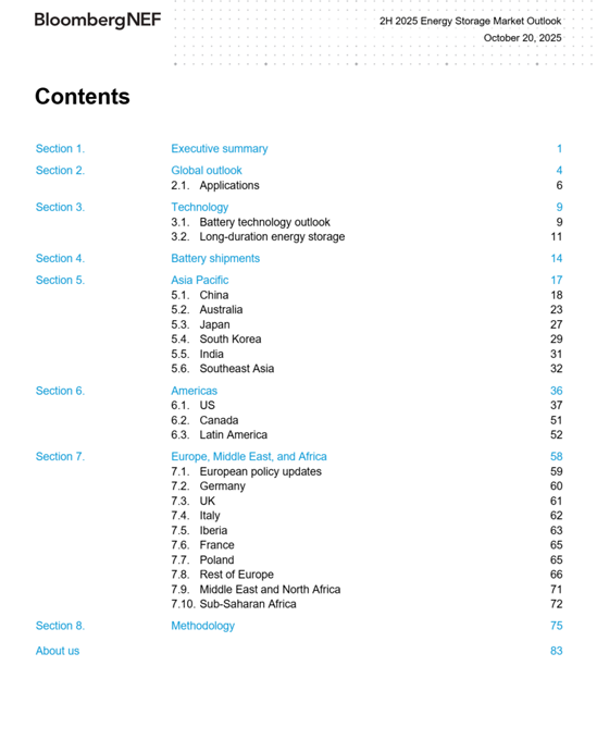 彭博新能源财经 研报 2025 年下半年储能市场展望 2H 2025 Energy Storage Market Outlook,含研报PDF(原文英文,87页)和数据excel