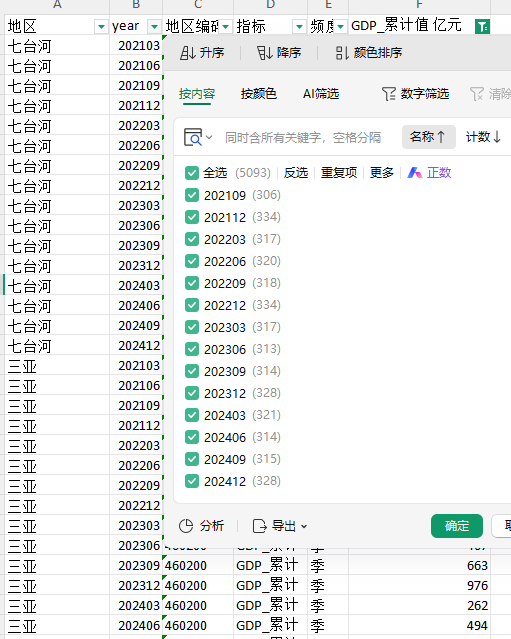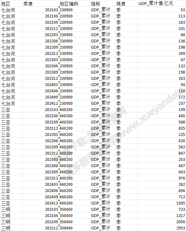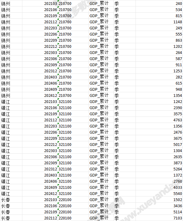 地区 year 地区编码 指标 频度 GDP_累计值 亿元