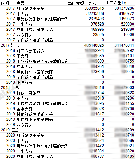 江苏大蒜出口分市场分种类分贸易方式2017~2024