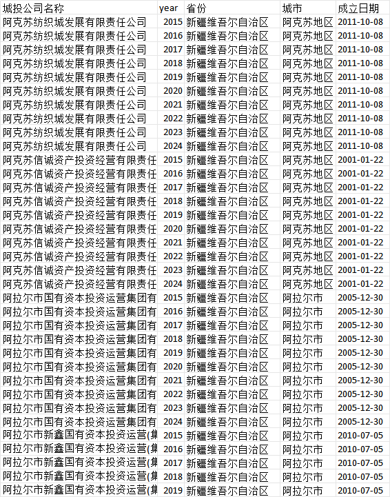 城投公司名称 year 省份 城市 成立日期 负债合计 资产总计 期初总资产 存货 存量债券余额债券类型全部 带息债务 总资产周转率 总资产报酬率ROA% 无形资产 借款合计 现金比率 当年累计发债只数 经营活动产生的现金流量净额 营业收入 资产负债率%