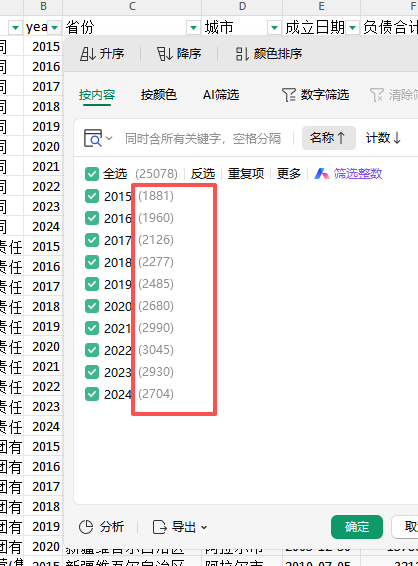 城投公司财务数据 2015~2024,共收录3592家城投公司,每年的样本量如图,需要其他指标另付费定制数据。