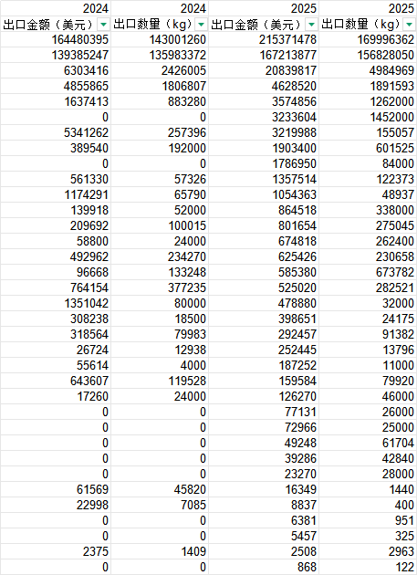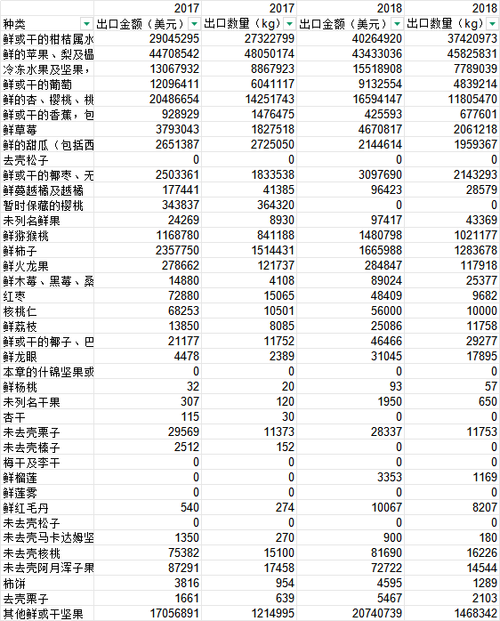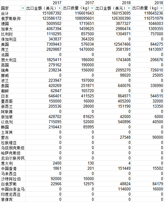 种类 出口市场 出口金额 出口重量