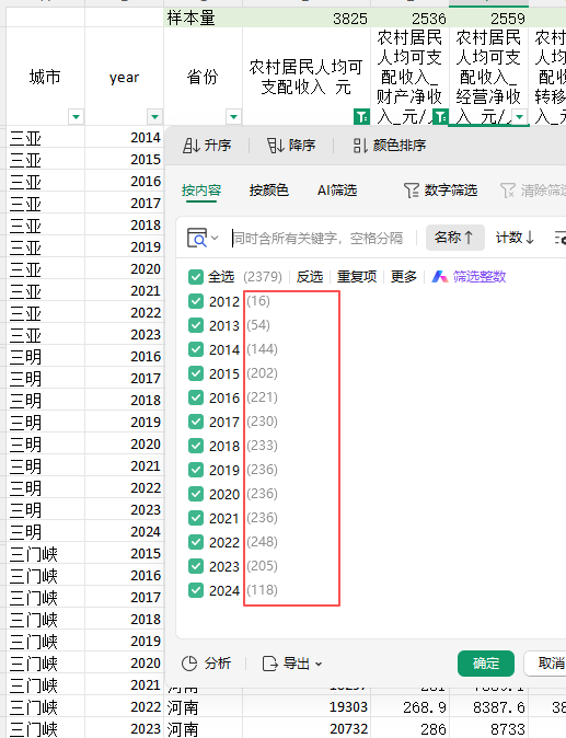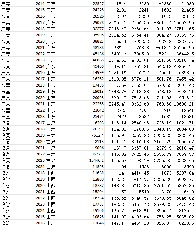 数据来自各地市统计年鉴,不是插值,是原始数据,更准确。学研数据网整理,样本量如图,注意2012、2013年样本量较少。