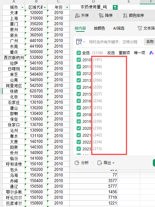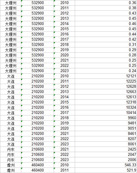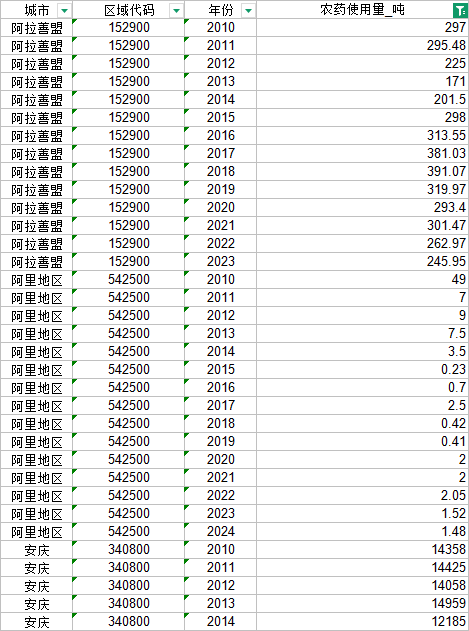 地级市农药使用量2010~2023,数据来自各地市统计年鉴,数据更新于2026年3月,样本量如图: