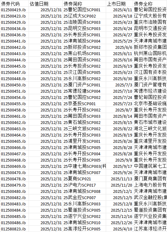 96000+只债券 2025/12/31中债到期收益率,有96237只债券样本,请注意本数据只收录了2015年1月1日以后上市的债券,中债到期收益率市2025年12月31日这一天的,需要其他日期请私信定制。
