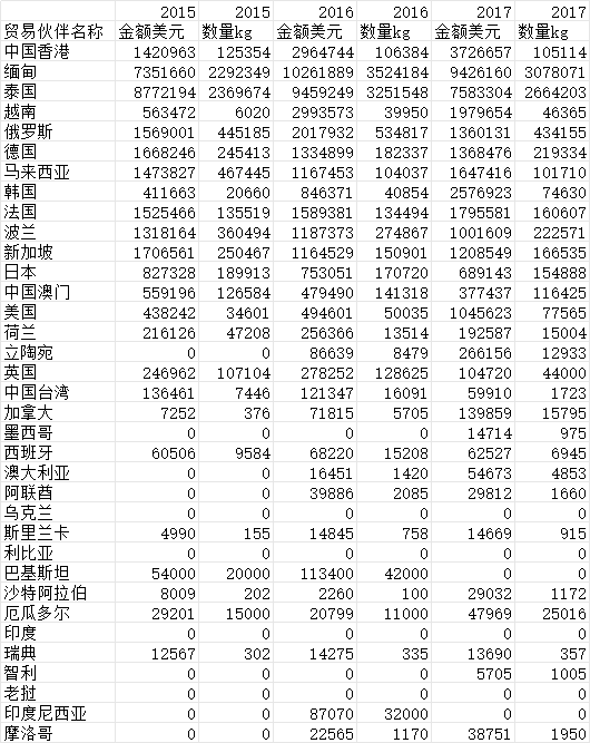 出口市场 茶叶种类 出口金额/美元 数量kg
