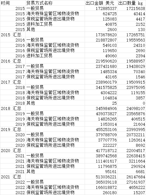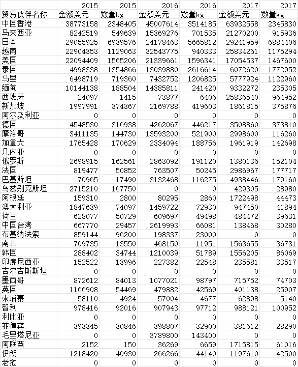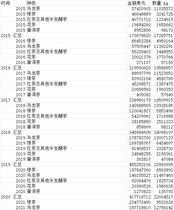 出口国家 茶叶种类 出口金额 出口数量 贸易方式