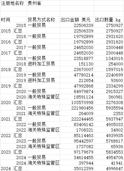 贵州省茶叶出口分市场分种类分贸易方式2015~2025