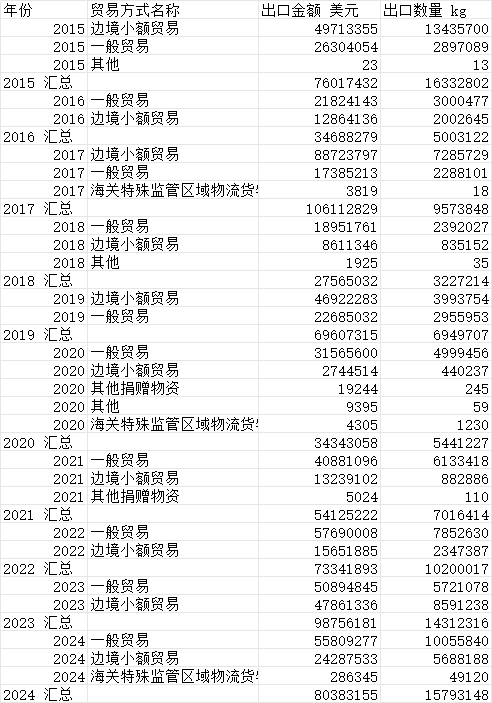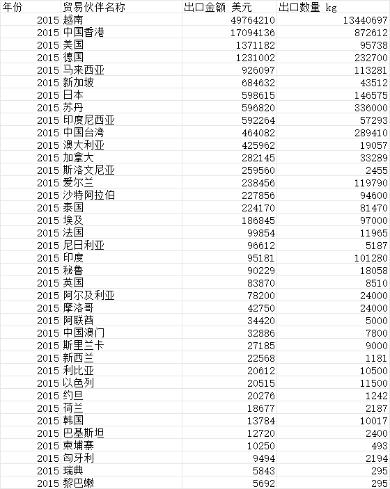贸易伙伴名称 种类 贸易方式 出口金额 美元 出口数量 kg